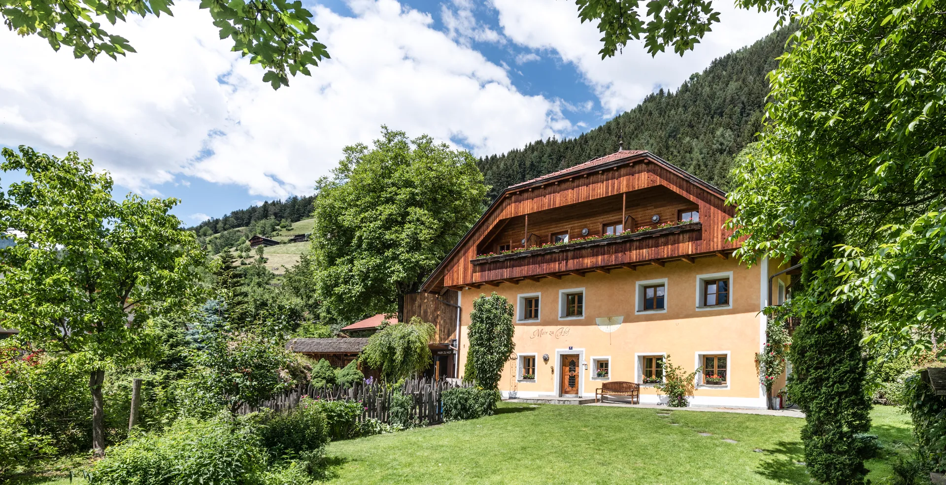 Viel länger, nämlich seit mindestens dem Mittelalter gibt es unser imposantes Gehöft am Ufer der Ahr. Unser heutiges Landhaus war einst ein Stammsitz der Ritter von St. Mauritzien. Diese angesehene Tiroler Adelsfamilie wurde im Jahre 1271 das erste Mal urkundlich erwähnt und stand im Dienst der hohen Herren von Taufers. Wenn ihr tiefer in die Geschichte eintauchen mögt, schaut doch gleich mal hier rein oder fragt uns persönlich - für einen Plausch samt gedanklicher Zeitreise nehmen wir uns immer gerne Zeit. Viel Energie und Liebe stecken wir auch in unsere 8 allergikerfreundlichen, nachhaltigen Apartments. Auf dieser Seite haben wir euch aufgeschrieben, was unser Landhaus in Sand in Taufers so besonders macht. Freut ihr euch schon auf eure ökologischen Traumferien in einer der schönsten Bergregionen Südtirols?